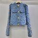 This cropped denim blazer reimagines classic Chanel elegance with a rebellious twist. The diamond-quilted stitching and pearlescent accents elevate it beyond a basic jacket—wear it to brunch or a night out with equal confidence.