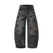 Retro Star-Print Cargo Jeans – Loose Straight-Leg Denim Pants With Distressed & Embellished Details