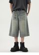 "Retro Wide-Leg 7/10 Denim Shorts – Vintage Washed Loose Fit Unisex Mid-Length Jeans For Summer"