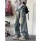 Ripped work jeans for men vibe style high street washed retro pants trendy American loose straight trousers