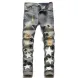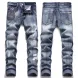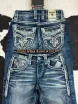 Rock Revival Men Goth Mens Y2K Gothic Foliage Bootcut Denim Jeans - Hip Hop Harajuku Wide Leg Embroidery Pocket Blue