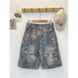 Rose Embroidered Distressed Denim Shorts – Vintage Washed Streetwear Short Pants (Summer Unisex, Anti-Fit Wide Leg, American High Fashion Aesthetic)