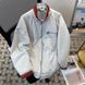 Small niche design washed color blocked stand up collar denim jacket for men in spring and autumn, American style cool and loose versatile jacket trend