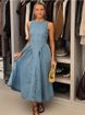 Solid color fashion washed camisole denim sleeveless dress for women's summer new style French slim fit