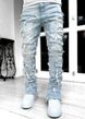 Spliced Distressed Denim Men Jeans Ripped Mid Waist Pockets High Street Jean Skinny Washed Ankle Length Pencil Pants