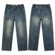 Spring And Autumn New Khmer Non Elastic Splicing Heavy Industry Jeans, Water Washed Loose Bent Knife Wide Leg Pants
