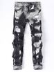 Spring And Summer Jeans With No Elasticity, Holes, Hollow Out Straight Leg Denim Pants, Streetwear Trend, Retro Tie Dye, Slim Fit Fashion Jeans