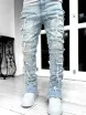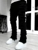 Spring Autumn Individual Patched Black Pants Long Tight Fit Stacked Jeans For Men 240819