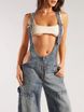 Street Style Low-Waist Suspender Jeans – Distressed Wide-Leg Denim Pants For Women (Black/Blue, S/M/L)