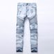 Street Style Motorcycle Men's Personality Wrinkled Slim Fit Skinny Pants Stretch Ripped Jeans