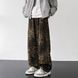 Suitable For All Seasons American High Street New Leopard Print Jeans Unisex Straight Loose Casual Floor-Length Pants Men