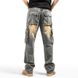 American Style Multi-Pocket Hip-Hop Cargo Jeans for Men Loose Plus Size Cross Mirror
