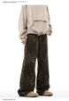 American Street Style Washed Vintage Leopard Print Jeans for Men Spring Autumn Straight Loose High Street Vibe Long Pants