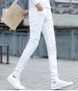 Suitable For All Seasons Trendy Light-colored Jeans For Men High Street Fashion Slim Fit Skinny Motorcycle Stretch Zipper Cropped Pants