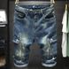 Summer New Cropped Pants Men's Street Retro Ripped Jeans Men's 7-point Elastic Thin Jeans Men's Large Size