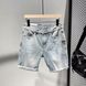 Summer new light blue washed simple and versatile denim shorts, men's personalized leather label decoration, youth five quarter pants