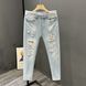 Summer small leg jeans men's ripped beggar pants nine quarter men's pants 2024 new rolled edge slim fit pants casual pants