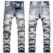 Tailored Four Seasons Patch Cotton Elastic Embroidered Leather Label with Perforated Print Fashion Men's Jeans