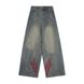 Three Stripes Loose Wide-Leg Jeans Unisex Trendy Punk Vintage Washed Ribbon Patchwork Striped Straight Long Pants