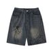 TIDEEKU Trendy Men's Clothing Light Blue Retro Washed Old Spider Print Denim Straight Loose Shorts