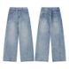 TKPA American High Street Crease Distressed Washed White Jeans Men Loose Trendy Straight Wide Leg Floor-Length Pants