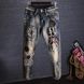 Trendy Brand Embroidered Jeans Men's Slim-fitting Straight Elastic Retro Embroidered Hole Patch Personalized Spring And Summer Trendy Men's Pants