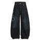 Trendy High Street Letter Print Scimitar Jeans Men's Cargo Washed Vintage Loose Wide-Leg Floor-Length Pants