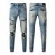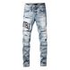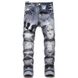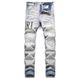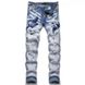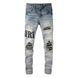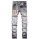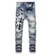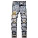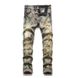 Trendy Personality Casual New Style Men's Slim Fit Embroidered Jeans with Patches and Ripped Details