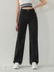 Trendy Women's Straight Leg Jeans With Geometric Crystal Line Design - High Waist Non-Stretch Denim Pants In Classic Black