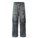 Two-Piece Patchwork Jeans for Men, Wasteland Washed, Distressed, Dirty, Heavy-Duty, Ripped, Frayed, Straight-Leg, Wide-Leg, Long Pants