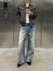 "Unisex A-Line Washed Blue Whiskered Straight Leg Distressed Jeans - Vintage Relaxed Fit Denim Pants With Natural Fading & Urban Street Style"