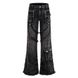 Vibe Trendy Lace-Up Flared Cargo Jeans for Men Heavy-Duty Distressed Frayed Edge Deconstructed Patchwork Niche Personality Long Pants