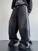 Vintage Baggy Straight Leg Jeans For Men - Retro Streetwear Denim Pants With Stripes, High Waist, Loose Fit, Washed Blue & Black (S-XXL)