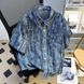 Vintage Blue Denim Shirt Jacket – Summer Lightweight Distressed Tie-Dye Design With Shoulder Pads & Short Sleeve T-Shirt Style