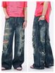 Tired of mass-produced skinny jeans? These vintage button-fly jeans revive the raw spirit of 90s streetwear. The intentionally distressed cracks and relaxed straight cut celebrate individuality – no two pairs share identical wash patterns.