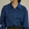 Vintage Denim Shirt Women's Casual Loose Fit Blue Chambray Top With Polo Collar, Retro Style Long Sleeve Blouse For Spring Autumn