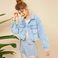 Vintage Distressed Denim Jacket For Women With Fringe Details, Cotton Blend, Streetwear Fashion
