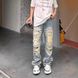 "Vintage Distressed Ripped Jeans Men's High Street Baggy Flare Pants With Embroidery – 90s Grunge Style, Oversized Fit, Retro Washed Denim