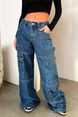 Vintage High-Waisted Cargo Jeans For Women – Wide-Legged Streetwear Denim Pants With Retro Distressed Detailing