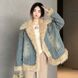 "Vintage-Inspired Denim Coat For Women - Fleece-Lined Winter Jacket With Cotton Padding, Warm & Stylish Outerwear"