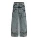 Vintage Patchwork Logging Jeans – Double Waistband, Studded Details & Wide-Leg Fit (Dark Blue, Light Blue, S-XL)