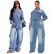 Vintage Washed Denim Jumpsuit – Oversized Workwear Overalls With Multi-Pockets, Relaxed Fit & Distressed Finish (Blue, S-2XL)