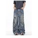 Vintage Washed Distressed Carpenter Jeans For Men & Women - High Waisted Straight Leg Baggy Denim Pants With Raw Hem
