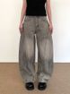 Vintage Washed Distressed Gray Splatter Paint Baggy Jeans For Men & Women – Streetwear High Waist Wide Leg Denim Pants
