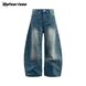 Vintage Washed Distressed Men's Loose Wide Leg Jeans, Retro High Waist Denim Trousers For Casual Streetwear