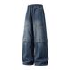 Vintage Washed Split Hem Jeans – Relaxed Straight-Leg Denim Pants With Adjustable Drawstring Waist, American Streetwear Style For Men & Women