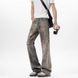 Vintage Worn-Out Style Printed Jeans for Men, American Niche Design, Loose Straight-Leg Slightly Flared Pants