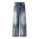 Washed Distressed White Denim Pants Cleanfit Punk Loose Wide-Leg Dad Pants Men's Vintage Frayed Straight-Leg Pants