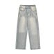Washed Faded White Jeans Versatile Loose Straight Casual Wide-Leg Long Pants American Style Men's Trendy Trousers