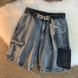 Washed old denim shorts, men's summer trend, ins multi pocket workwear pants, loose fitting American casual capris